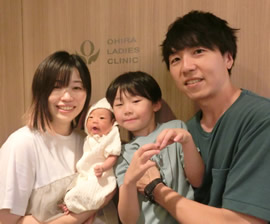 予定日を11日過ぎ、誘発分娩となり不安もありましたが、入院前に大平先生が丁寧に説明して下さったり、助産師さんが最初から最後まで寄り添い励ましてくださったりしたおかげで、出産出来ました。ソフロでの分娩・イメトレのおかげで自分がすべきことがわかり、落ちついてお産に臨むことができました。