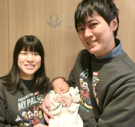 3年振りのお産でドキドキしていましたが、ファミリークラスを受講して、呼吸法など思い出し、安心できました。一人目の時は、夫が立ち会えなかったのですが、今回は夫と息子と立会い出産ができて、ずっと側で励ましてくれて、頑張れました。赤ちゃんに会えた時、本当に嬉しかったです!!